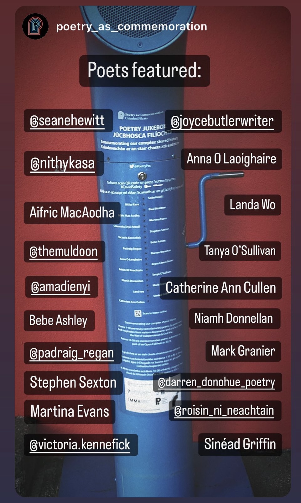 I’m delighted to share news that my poem ‘From a Register of Sick Calls – attended to by the Clergy in July and August, 1922, during the Siege of Waterford’ has been included on the Poetry as Commemoration Poetry Jukebox for Dublin City Centre along with some incredible Irish poets like Paul Muldoon, Martina Evans, Sean Hewitt, Stephen Sexton and Victoria Kennifick amongst others. The poem was written during two Poetry as Commemoration Workshops that took place in Central Library, Waterford in November 2022. The poem is about some local Waterford people who were shot during the Siege of Waterford which took place during the Irish Civil War in July and August, 1922. Ann-Marie Gaffney from Upper Grange, John Doyle from Roches Street, and Patrick O’Grady from Kilmacthomas. Thankfully most of them survived their injuries. My inspiration for the poem came from examining the Priests Visits Book, which recorded the visits by a local priest, to those who were shot and recovering in the County Infirmary on John’s Hill, Waterford.